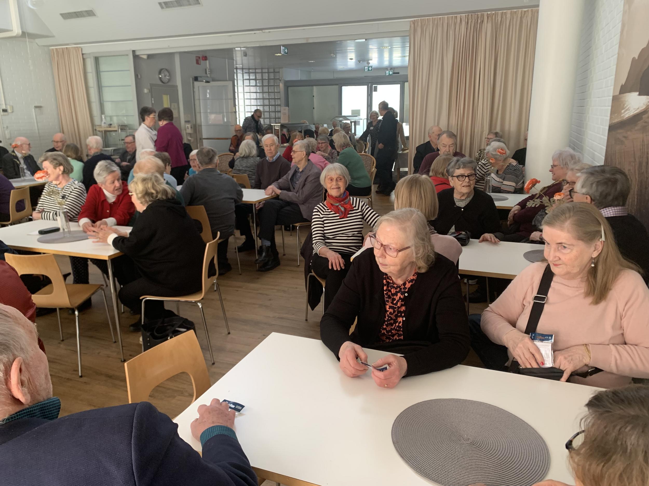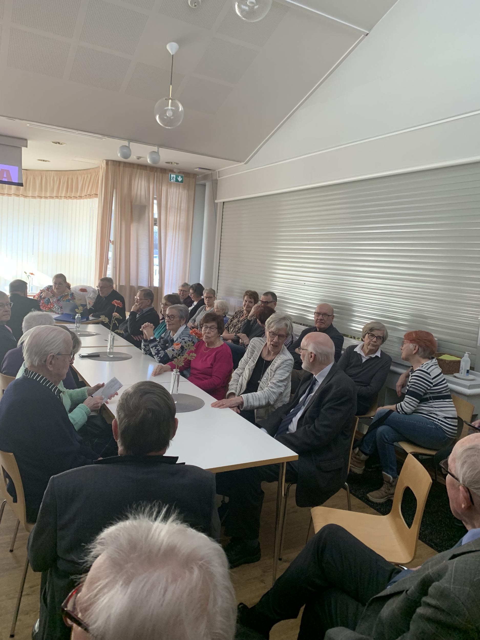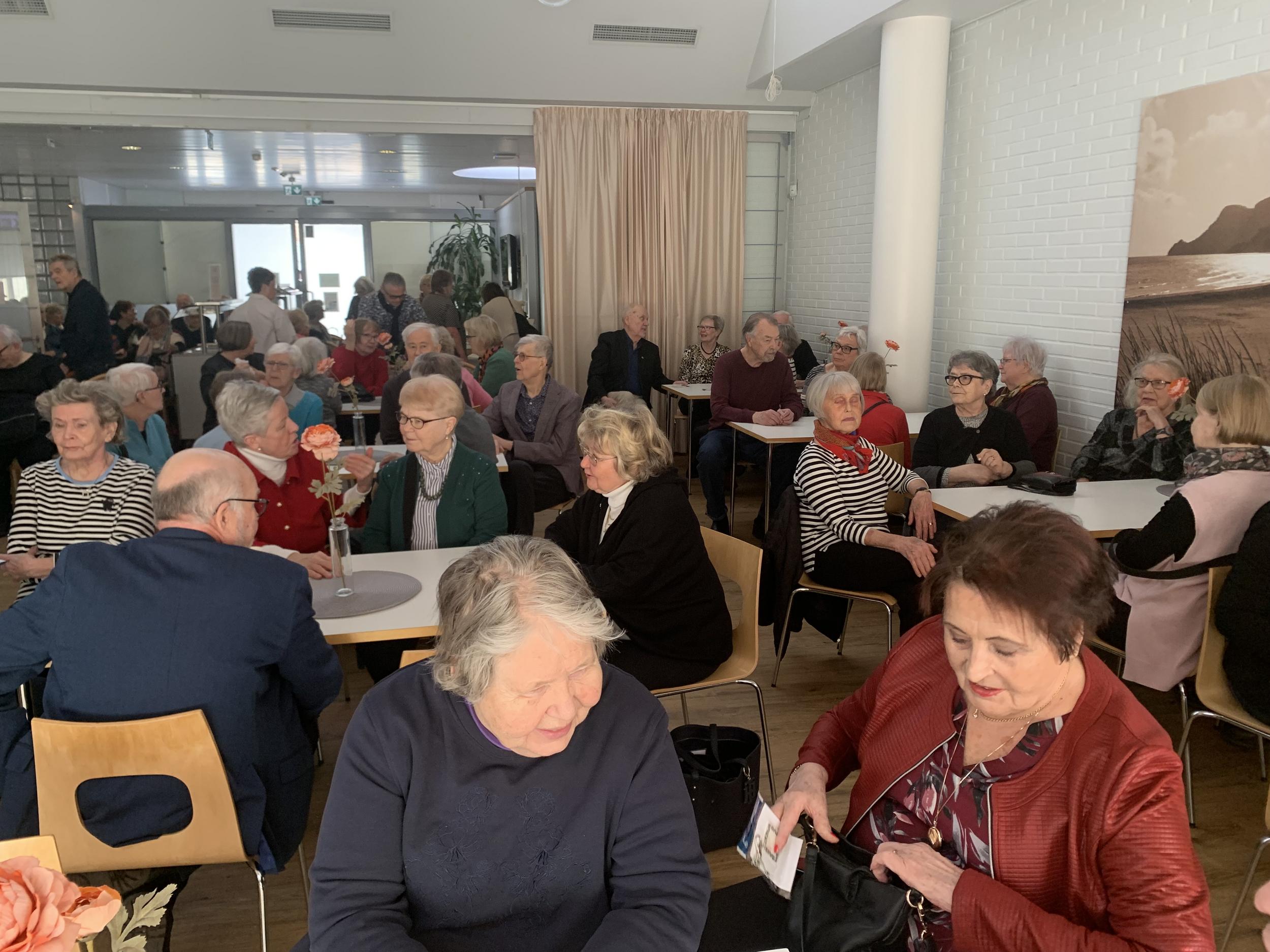 Lopuksi lauloimme päivänsankarille onnittelulaulun ja nautimme herkulliset kakkukahvit. Jäsentapaaminen veti Viertolan lähes täyteen, meitä oli 99 henkeä!