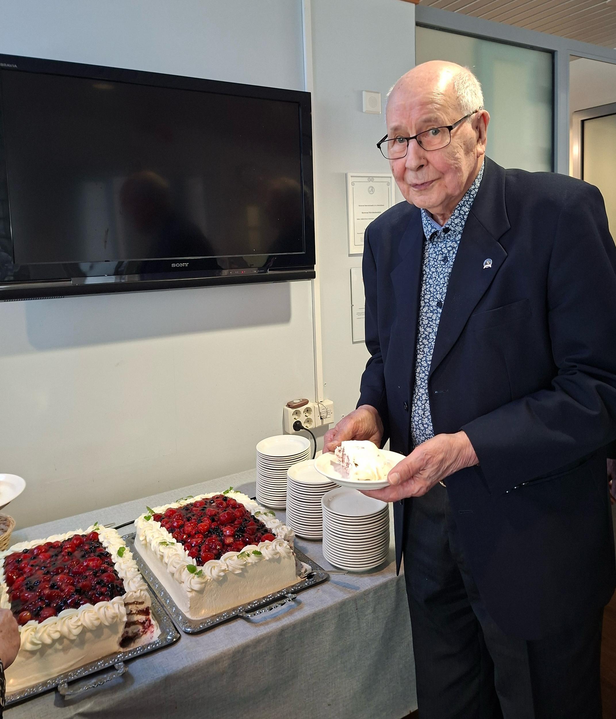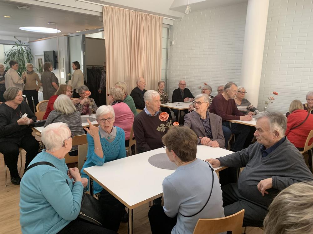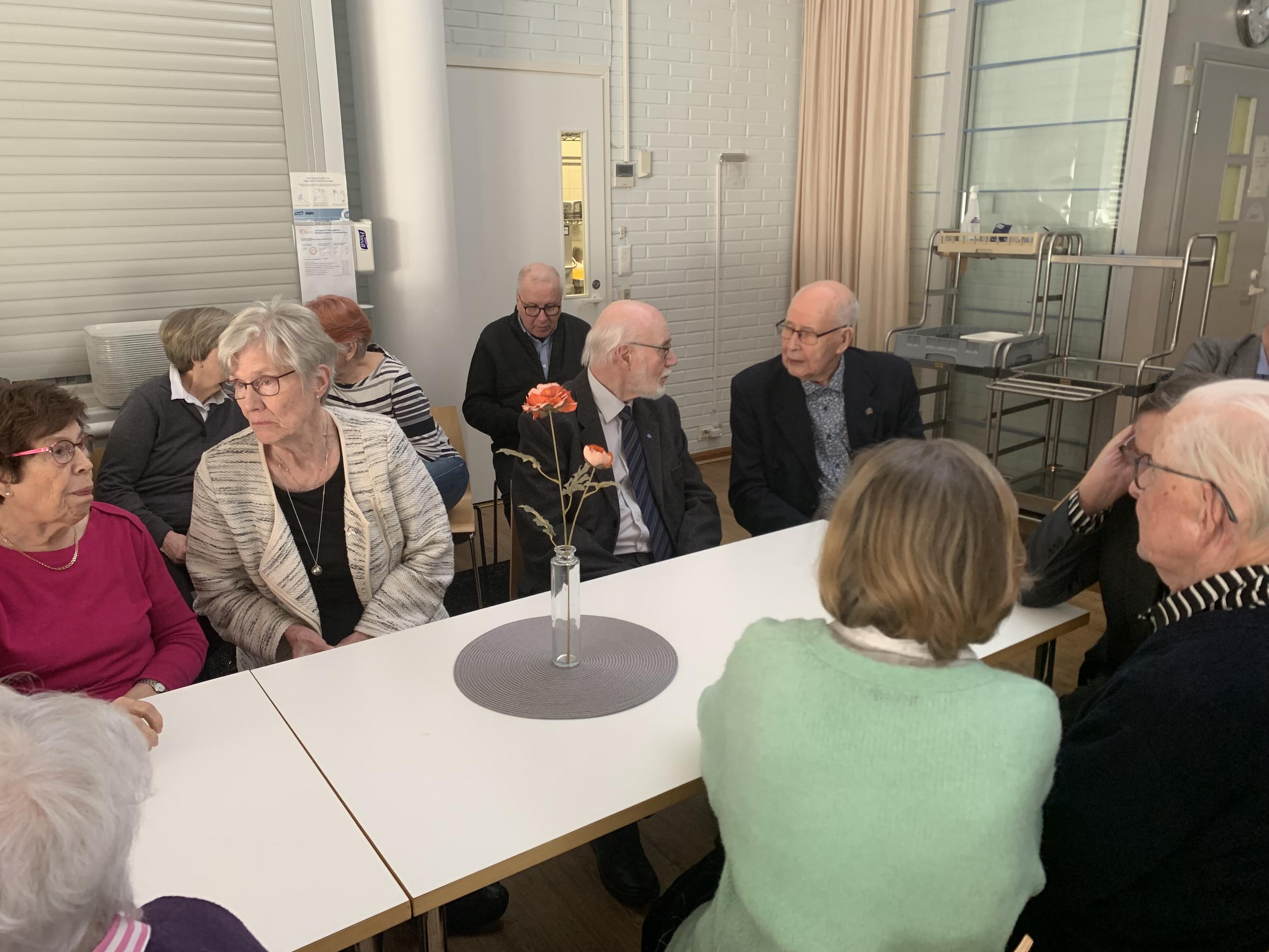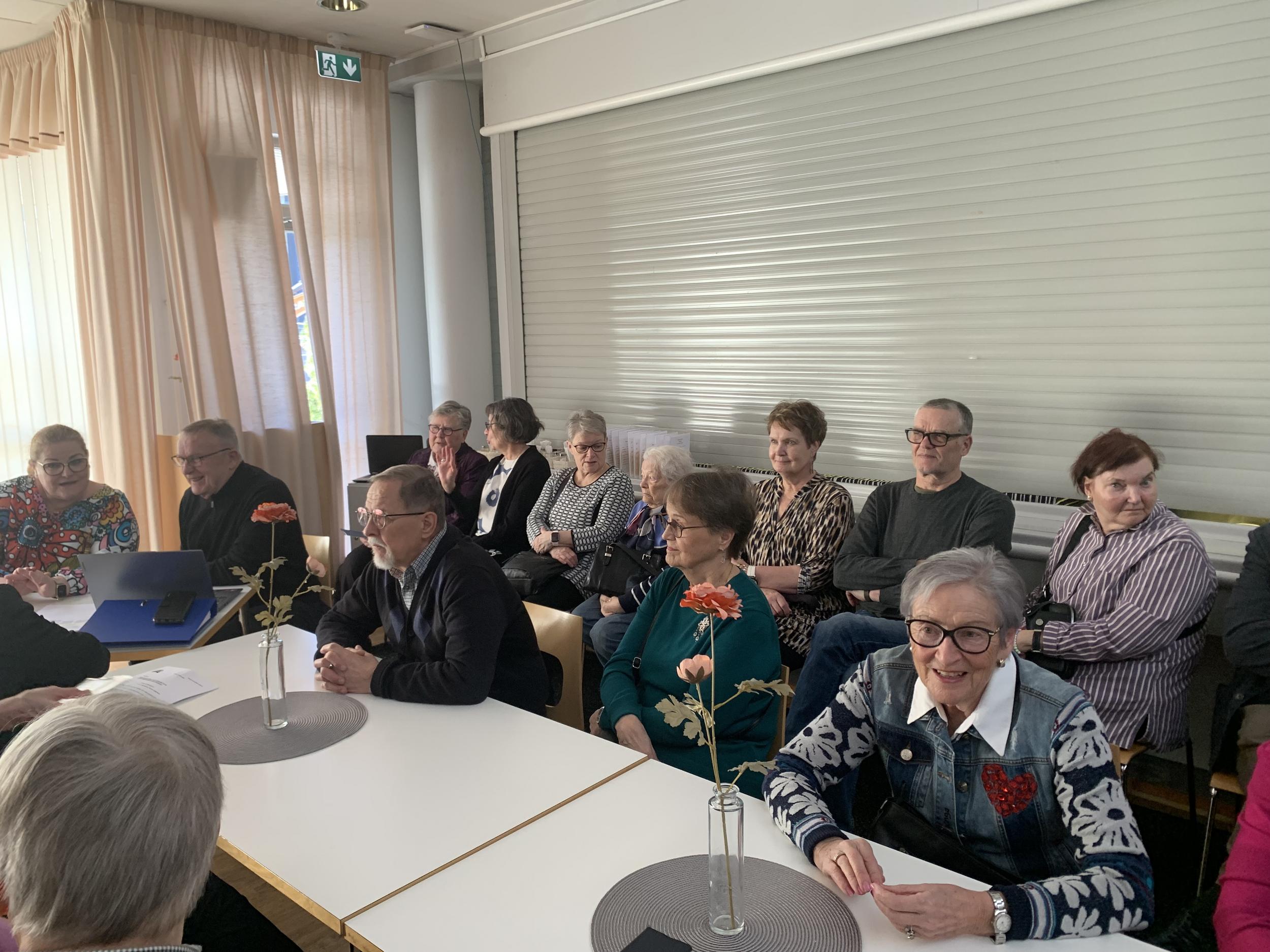 Lopuksi lauloimme päivänsankarille onnittelulaulun ja nautimme herkulliset kakkukahvit. Jäsentapaaminen veti Viertolan lähes täyteen, meitä oli 99 henkeä!