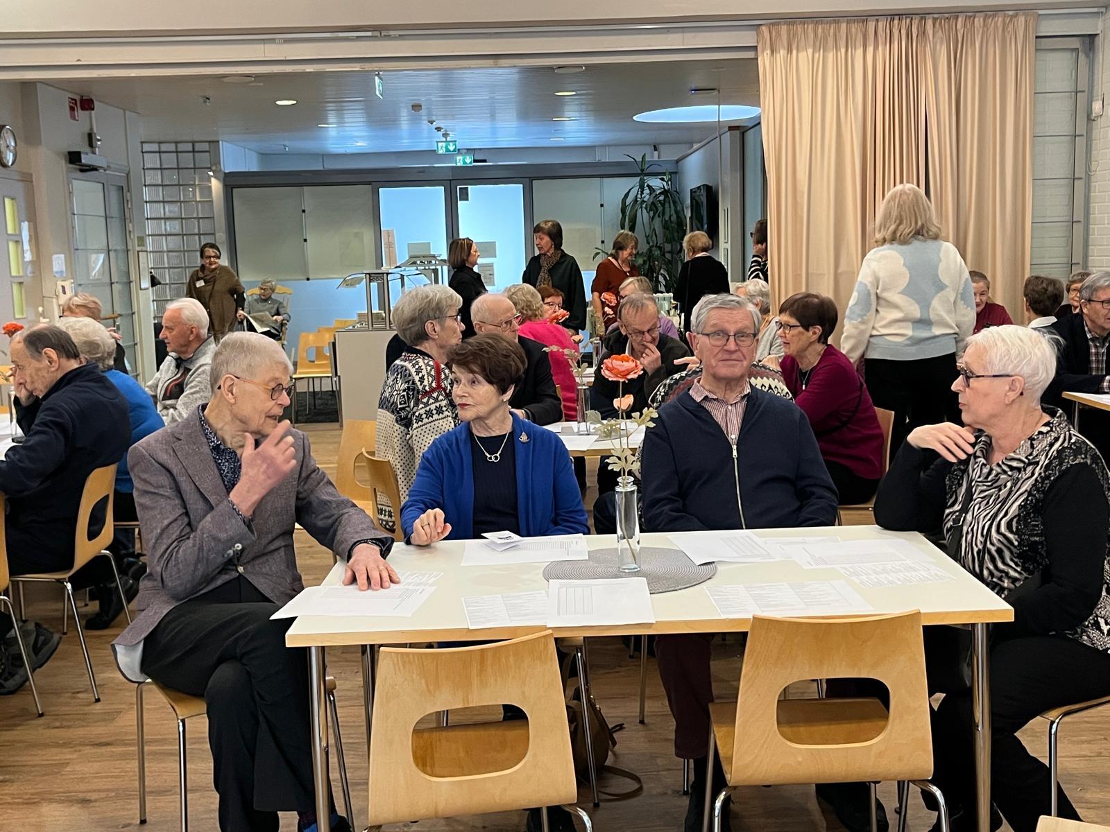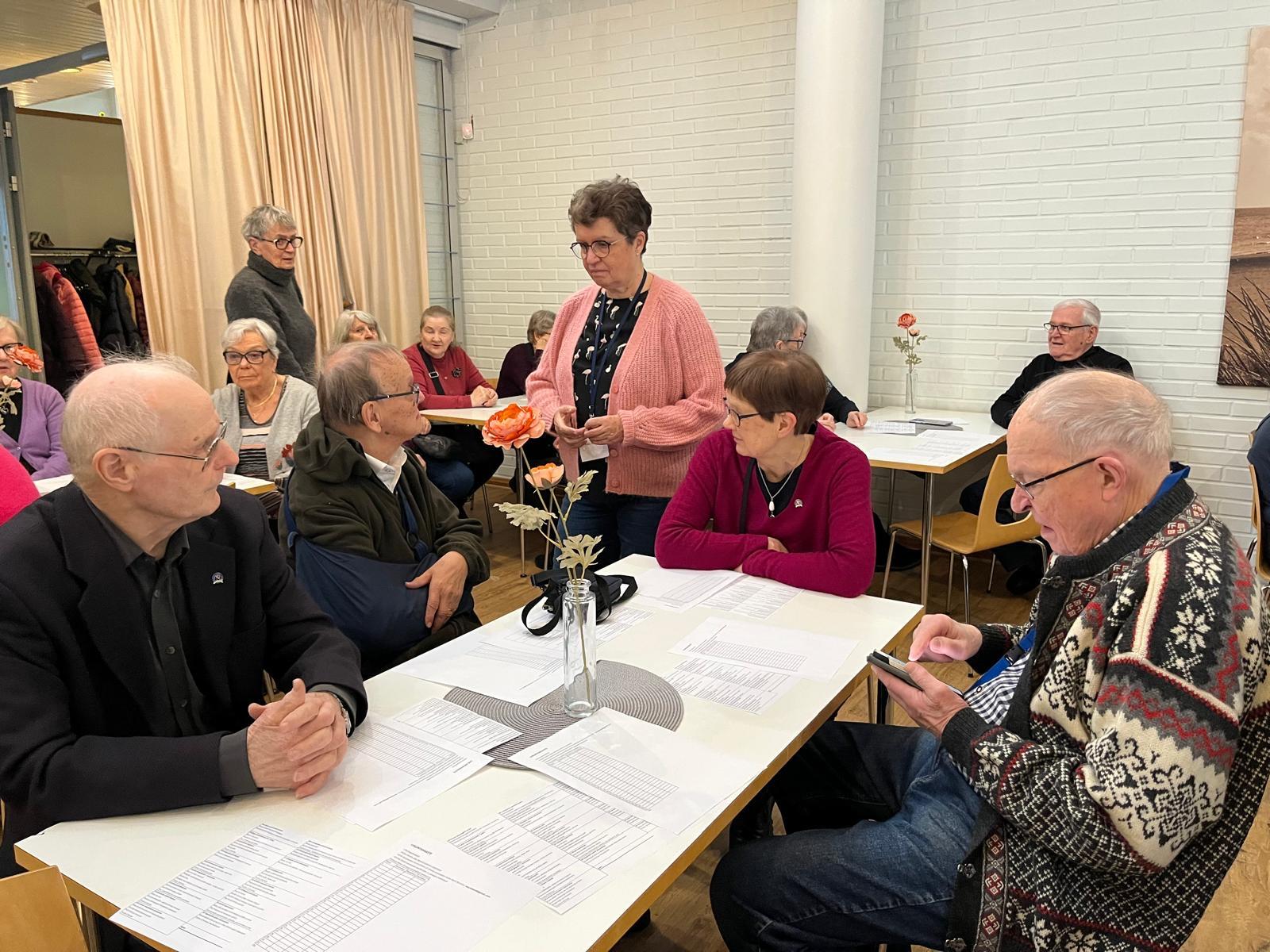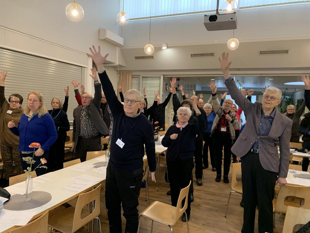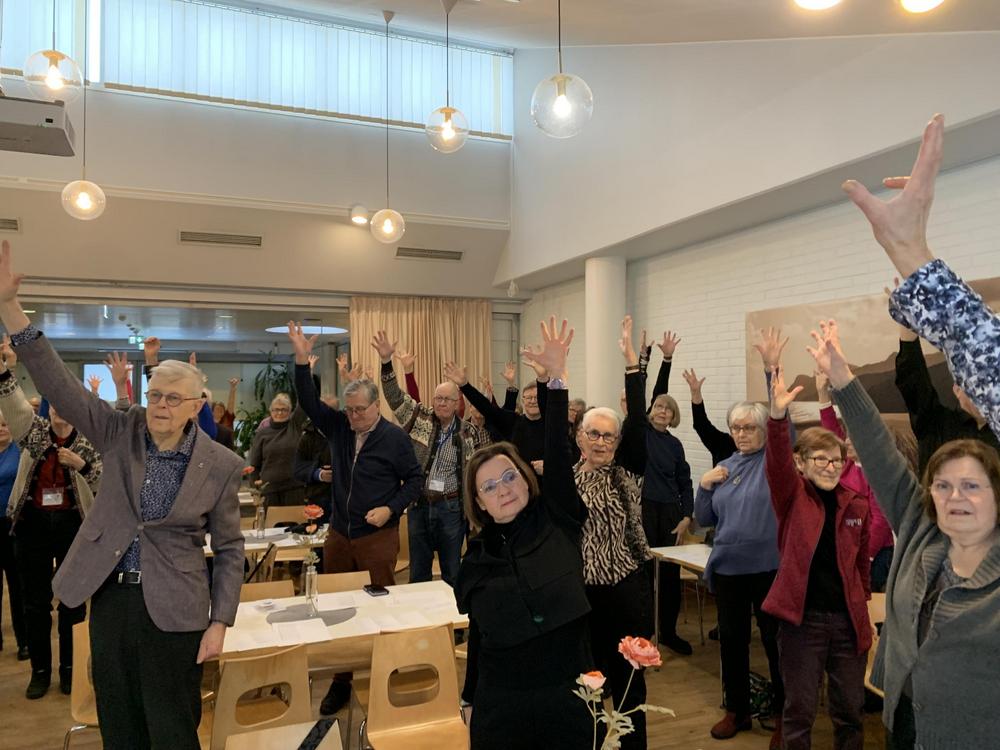 Arja Vakkila käynnisti tapaamisen energisellä jumpalla, mikä sai kaikki oikeaan tunnelmaan. Vuonna 2030 Suomessa on noin 800 000 yli 75-vuotiasta. Ruutujen ääressä vietetään keskimäärin kolme tuntia vuorokaudessa. Tämä voi johtaa toimintakyvyn heikkenemiseen, erityisesti jos päivittäinen askelmäärä jää alle 2000 askeleen. Erityisesti sairastumisen jälkeen vuodelepo voi viedä voimia ja lihasmassaa jopa 2 % päivässä. Mutta jo puolen vuoden harjoittelulla voidaan saavuttaa huomattavia tuloksia. Säännöllinen liikunta ja aktiivinen elämäntapa voivat merkittävästi parantaa ikääntyneiden fyysistä ja henkistä hyvinvointia.
