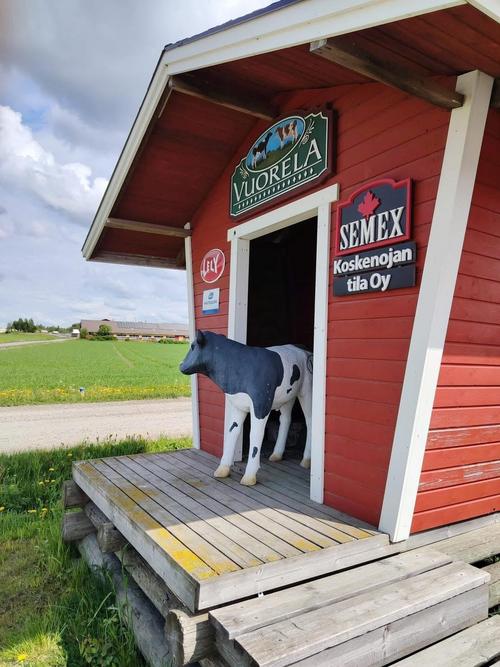 Seuraava kohteemme oli Koskenojan tila Jalasjärvellä, jossa emäntämme Liisa Vuorela kertoi tilan historiasta ja nykypäivästä. Tilalla on vasikoita ja lehmiä yli 200 ja neljä robottia hoiti lypsämisen 24/7. Liisa kertoi mm. tilan 14-vuotiaasta Timantti-lehmän tuottamasta maitomäärästä eli 100000 kiloa, jota tietysti tilalla myös juhlistettiin. Lisäksi hän mainitsi, että Suomessa tuotettu maito on maailman parasta ja puhtainta. Harmillista vain maidon tuottajahinta, mikä on Euroopan alhaisin eli 0.50€ . Siihen kyllä pitäisi tulla parannusta oli meidän vieraiden toteamus, jotta maidontuottajat myös pärjäisivät .
